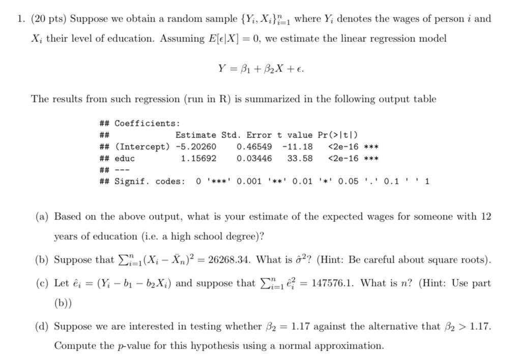 Solved 1 Pts Suppose We Obtain A Random Sample Yi Chegg Com